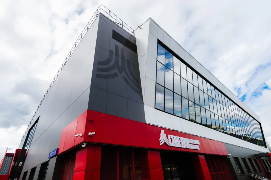 Фасад спортивного комплекса «Савёлки» значительно преобразился: лаконичная цветовая гамма, современный дизайн, геометрические фигуры в интерьере и декоре.